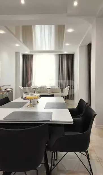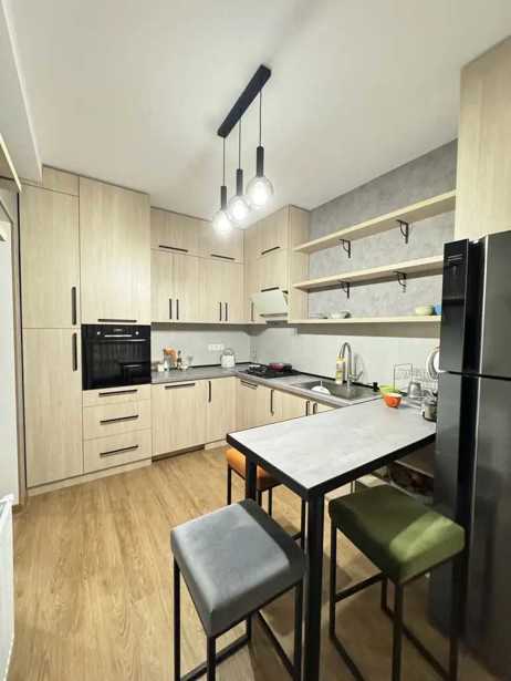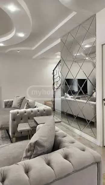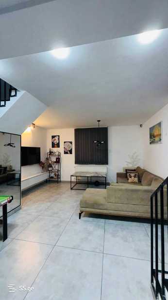 For sale is a newly built private house in the Varketili area on Аghmashenebeli Street with a size of 120 m² and a yard of 369 m². The house consists of 3 bedrooms and 4 rooms, including a cozy living room with a fireplace, a modern bathroom, and a laundry room. Large windows provide natural light, while the wooden floors and hall create a cozy atmosphere. The house features a terrace and a patio, where you can enjoy the greenery of the yard and the garden. There is also space for a home office, making it ideal for both work and relaxation. The high-quality new environment and quiet yard create a perfect setting for a family. Built-in furniture and appliances are included, as well as the bedrooms.