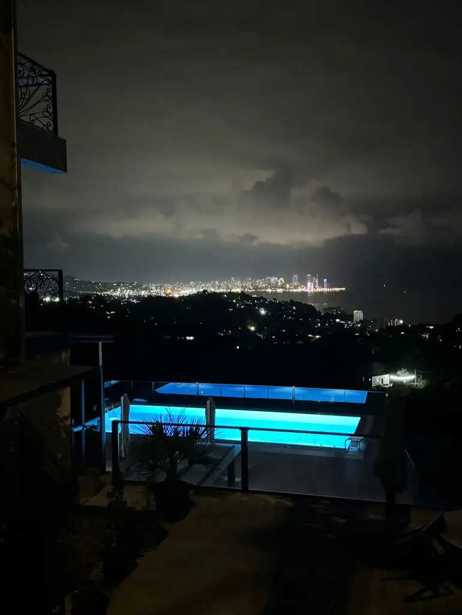 The house is located in Batumi, specifically in Barakhan, where panoramic views of the sea, mountains, and the new project "Palm Island," which is currently being built in the sea, are available. The house is nearly finished — all work is scheduled to be completed in the next 2–3 months. Total area: 350 m² Number of floors: 3 + large terrace on the roof First floor Indoor pool with an effective waterfall from the ceiling Sauna and large jacuzzi Separate bathroom and toilet Wine cellar with its kitchen Spacious utility room for boiler and family needs Second floor Large living room (80 m²) with premium renovation Kitchen Laundry room Common bathroom and toilet Cabinet/office Three bedrooms, each with its own bathroom and wardrobe All windows are equipped with remotely controlled curtains Third floor Bright orangery (winter garden) with a small kitchen and bathroom Architectural solution with panoramic glass walls and ceilings (a combination of glass and concrete) Spacious terrace with views of the sea and the city Roof (fourth level) Very large open terrace with panoramic views of Batumi, the mountains, and the sea Yard Large gazebo with a waterfall Decorative flooring covering the pool with a transparent glass cover (width 1 m), lighting that allows you to see fish and the bottom, this flooring is walkable Decorative fountain (ready for installation) Amenities and features The heating system is installed throughout the house, including the stairs Premium 3D parquet: mahogany in the living room and oak in the bedrooms High-quality construction with special attention to details. Summary: This is truly a luxurious and unique house, perfectly located right in front of the under-construction Palm Island project in Batumi. You can personally visit the house and assess its true value yourself.
