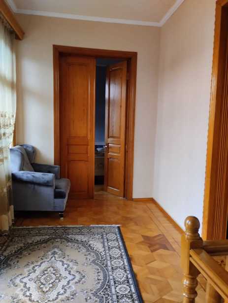 For sale: a private house in Kutaisi on Giorgiashvili Street. The area of the house is 217 sq. m. The yard area is 350 sq. m. On the first floor there is a kitchen, a living room, a daily room, a bathroom-toilet, and one additional room. On the second floor there are four large bedrooms and a large hall. The yard needs to be done; it is shared but there are no walls or yard. We will discuss the price.