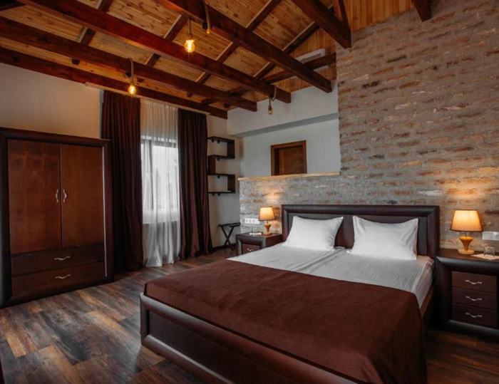 For urgent sale 3-storey house (functions as a hotel) with its own yard in Telavi, Zuzumbo's territory. The yard area is 333 sq.m. The total area of the building is 350 sq.m. There is a separate standing cellar of 15.5 sq.m. It has 6 large bedrooms. The first floor area is 107.5 sq.m - 2 double rooms, a hall-living room, reception, a wine cellar, and a fireplace room. The second floor area is 105 sq.m - 4 double rooms, two of which have balconies. On the third, attic-type floor is a kitchen, a breakfast room, 1 bathroom, 2 verandas, and 1 balcony. Each room has a bathroom, TV, air conditioning, hairdryer, refrigerator, central heating, and hot water. Separately, behind the house there is a technical service building and a laundry. The hotel has a good location, reachable to the center on foot in 12 minutes. Booking.com service is available. Please contact me on WhatsApp, thank you.