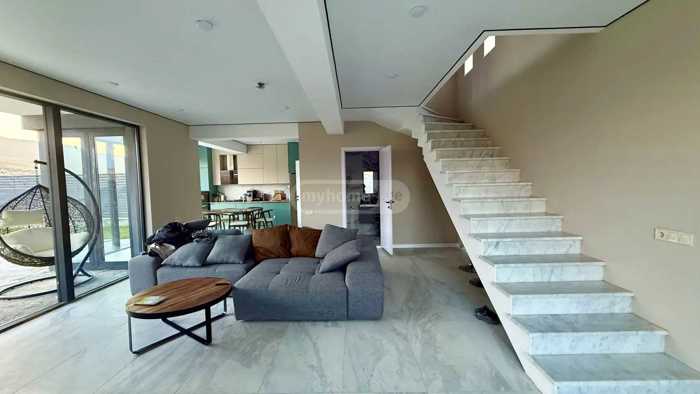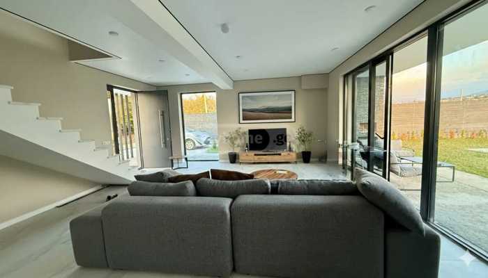For sale is a newly built two-story house in Tsavkisi/Tbilisi (15 minutes travel from Freedom Square). Very quiet and ecological area. Five bedrooms, four bathrooms: on the second floor there are four bedrooms, two bathrooms, and a laundry room; on the first floor, a living room, kitchen, bedroom/study, one bathroom, and one restroom. The kitchen is integrated with the veranda from which impressive views of Tbilisi unfold. The veranda is furnished with a gas grill and outdoor furniture (sofas, chairs, and tables). Ecologically clean environment, well-equipped and green yard. The house is furnished with new furniture and appliances.