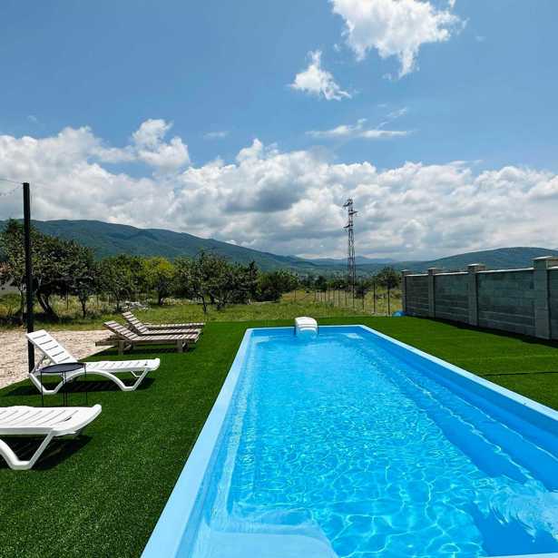 A private house is available for rent daily in Misaktsieli, 20 minutes from Tbilisi. Three bedrooms, including one master bedroom, fully furnished and equipped with all necessary appliances. The house has dishes, a hot and cold coffee machine, a stove, an oven, a large TV, a speaker, an indoor fireplace, a mixer, central heating, a dishwasher, a large refrigerator, hot water, and a thermal pool.