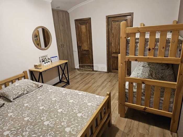 4-bedroom newly built house for rent in Bakuriani, on the circular, at the foot of Kokhta, Sat. Near the passengers. On the second floor there are 4 bedrooms and 2 bathrooms, and on the first floor there is a large living room with a fireplace, a kitchen, a storage room and 1 bathroom. In the house you will find all the necessary new appliances, dishes, bed linen and other small things. with a secluded yard.