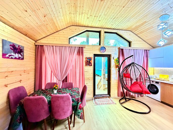 Agencies do not contact me. Newly built, well-furnished cottage for rent in Chikhori. Located 15 kilometers from Tbilisi. The cottage is equipped with all kinds of furniture and appliances. It is also very comfortable for living in winter. Central heating and a modern wood stove are installed. There are stores, a pharmacy, a kindergarten, and a children's playground nearby. The cottage will be available from the end of July.