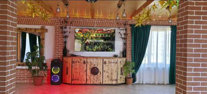 For parties A house is available for rent for parties. You will find in the space: 3 air-conditioned halls (an underground hall with speakers, lasers, and a disco ball) with inventory. Tables, chairs, dishes. Fully equipped kitchen, a grill in the yard, barbecue area. 2 restrooms, 3 bedrooms, and 1 lounge room. The house is fully furnished with all necessary inventory. 1200 square meters of yard with an open pool and jacuzzi. The price depends on the number of guests. We offer both buffet and Georgian table service, as well as design (for birthday parties, weddings, and other events).