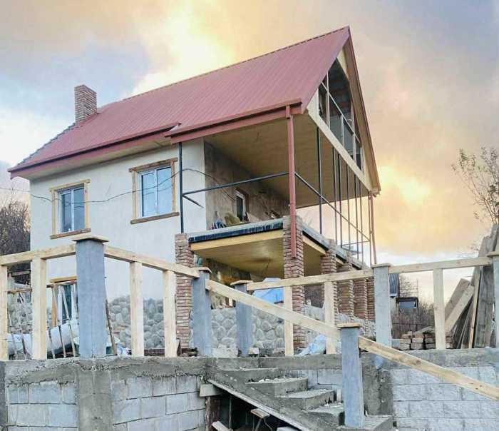 A private house is for sale in Navdarani, New Saguramo with a 500 sq.m. land, 213 sq.m. outdoor area, and 184 sq.m. indoor space. The house has a green frame and the highest quality black metal and plastic doors and windows, underfloor heating pipes, perfectly plastered walls, a closed ceiling on the second floor with gypsum, 3-5 bedrooms, a large studio living room, a separate kitchen can be allocated, surrounded yard fencing, all communications available. Gas and electricity connection, beautiful views, greenery, tranquility... 3 minutes away from Tianeti and Chvarichamia for $155,000.