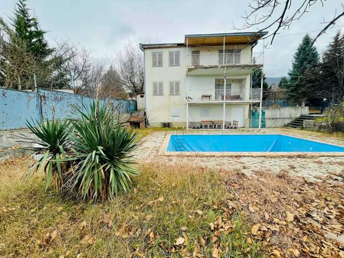 For sale in Saguramo, on a non-agricultural land plot, a newly built one-story house with three terraces, 395 sq/m with 10 rooms, each room with individual access to the yard. Hall, 5 bedrooms, each with individual bathrooms (all wet areas with glass windows) and individual access to the yard, guest wet area, laundry room, technical room, living room, dining room, kitchen + closed kitchen, covered terrace, and swimming pool. The building has thermal insulation, aluminum windows, own artesian well (100 meters), village water supply, central sewage, central heating (floor heating in wet areas, living room, kitchen), cable TV, WIFI internet, security system, cameras, UPS permanent power supply to provide heating, cameras, internet, and lighting in several rooms if needed. The yard has a swimming pool sized 4/8 with heating and night indoor lighting. There is parking space for three cars in the yard. Furniture remains in the house if desired. An asphalt road leads to the house. In front of the house, there is a children's playground. Price: 600,000$ Tel:511221212