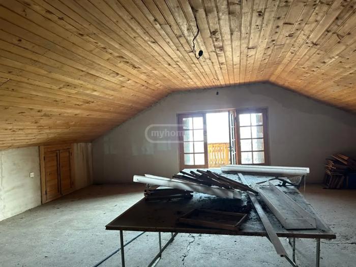 For sale a two-story house, on a plot of 9800 sq.m. with a well-maintained garden in the village of Akhaldaba (Mtskheta district). All communications are connected. 1000 meters above sea level. Clean air and panoramic view. Overlooking Tsilkani from above. Beautiful view from the balcony. A well-maintained garden. Pear, apple, fig, cornel, cherry of several varieties, plum, walnuts, almonds, hazelnuts, white and black mulberries, blackberry, sea buckthorn, and hawthorn. Large driveway. The yard has its own spring and additional village water. Gas and electricity are available. The road is paved. 10 minutes to Bazaleti Lake. I am the owner.