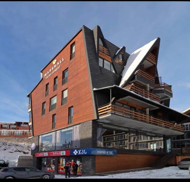 1 bedroom apartment in the “Marshal Gudauri” building, with 24-hour concierge and technical staff, 2 elevators, central laundry, central heating-hot water, clean and comfortable entrances and common areas. The house has the best views and location, 300 meters from Marco Polo and the first ski lift station. The building itself has a supermarket and ski rental. It is within walking distance from a medical facility, restaurants, supermarkets, police, and all the infrastructure necessary for a safe vacation. The apartment is fully equipped with furniture and appliances, it has practically never been used. The owner has a 2-place locker in the ski depot located on the first floor. “Marshal” building is one of the most requested locations for tourists and vacationers, and there are many people who want to rent an apartment there. Accordingly, purchasing this property will be a good investment also for the people interested in the tourism business.