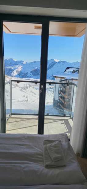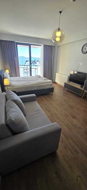 The apartment with mountain view balcony located in New Gudauri, at the elevation of 2200 meters, and is in one of the most beautiful and developed part of the Ski Resort, just few steps (about 100 meters) from the main Gondola/Ski lifts and all the main amenities. The apartment is with own free Ski Depot storage. In the room you will enjoy free WiFi, Smart and cable TV, Netflix, king sized bed which can be separated, two additional bed, baby cot, cozy chairs and sofa. The apartment in every details cleaned carefully, in a high quality way and with a great care after each guest leaves.