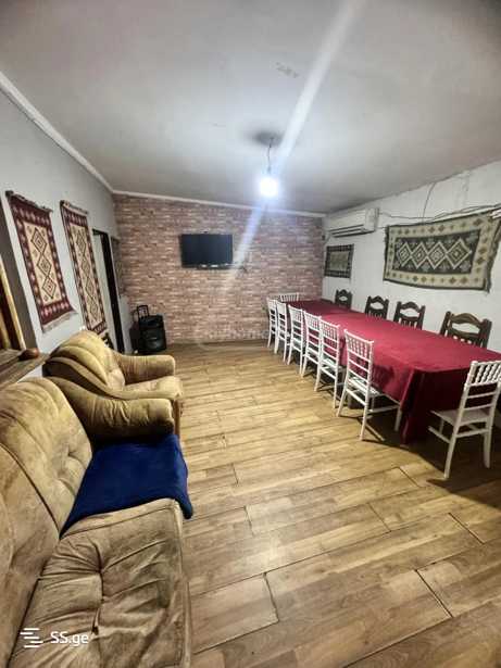 A 2-story house is for rent on the road 10 minutes from Gldani. On the first floor, there is a living room with a fireplace, a kitchen, dishes, a gas stove, a refrigerator, and an electric oven. On the second floor, there is a living room (15+ people) with 2 bedrooms and bathrooms in the house and yard. There is all kinds of dishware, a grill with skewers in the yard, a Bluetooth speaker, and there are no restrictions on noise.