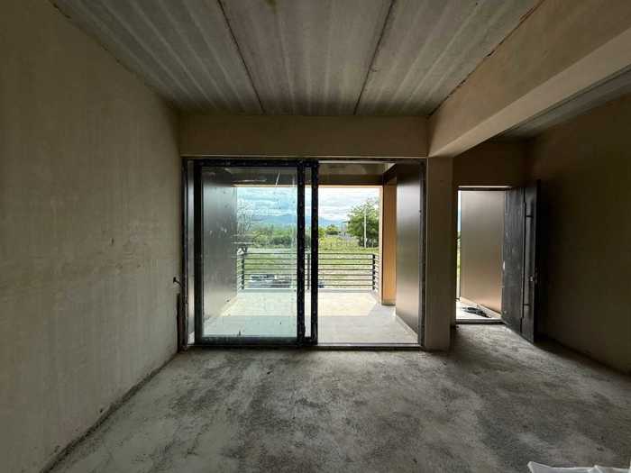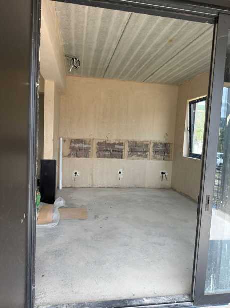 For sale at a price below market value, a newly built house with 806 sq.m of land, with sanitary facilities installed, window frames fitted, plastered, with an internal staircase and a beautiful view, close to the road with a view of the Aragvi Valley. Equipped with a video camera, water, gas, and electricity connected, central heating. Private well drilled. Gas lighting connected.