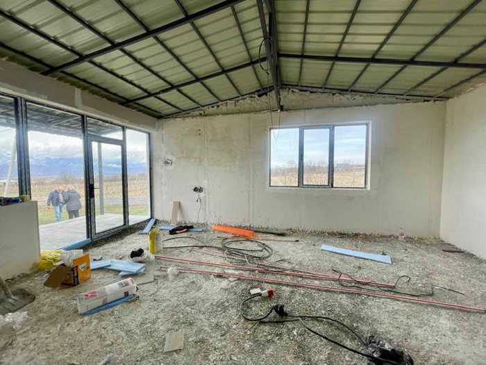 Urgently Available for sale at a price below market value #225Z Two houses of cottage type for sale near Telavi, on the upper side of the central road of the village of Nasamkhutali, in a quiet and green location. Each house has an internal space of 80 sq.m. and also has a terrace with an area of 20 sq.m. The apartment has a studio-type living room (an isolated kitchen may be made), 2 bedrooms, and a bathroom. There is also a terrace, and a quite large yard of 762 sq.m. surrounded by vineyards and green areas. There is a real perspective for expansion. If desired, it is also possible to build a second floor. All communications are available. Both houses have their own sewage well. The houses are practically brought to the condition of a green frame. If desired, negotiations on finishing the renovation are also possible. More specifically, the current owner will take on the responsibility for completing the renovation of the house and the landscaping of the yard, or organizing the construction of a swimming pool, as agreed. Building area: 80 sq.m. Terrace: 20 sq.m. Each yard area: 760 sq.m. Price per house: $35,000