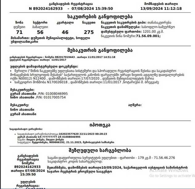 Unique land plot with a farm for sale! Location: Village Undilaantkari (with high-mountain status) Area: 10,000 m² Price: $14.5/m² ($145,000 full price) Advantages of the plot: regular relief fertile land, proximity to the lake, fully equipped infrastructure, possibility of gas supply, farm (450 m), newly built, with full permits, Internet & surveillance system, ready to start a business! Special note, $80,000 has been invested in the construction of the farm, which is included in the price!