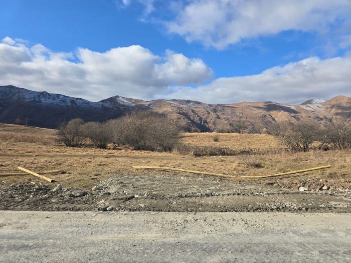 Investment land with flat terrain for sale in the village of Seturebi near Gudauri, 9027 sq. m price 70$. See two cadastres in the photos.