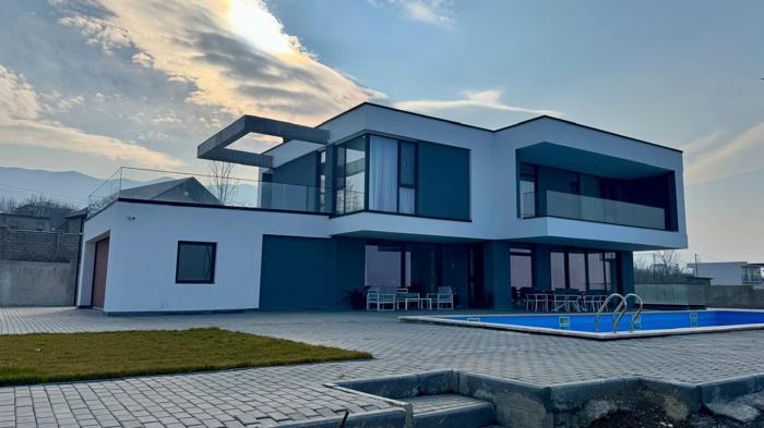 For sale is a premium-class private house in Saguramo, in one of the most peaceful and prestigious locations, surrounded by beautiful nature and clean air. The house is situated on a green plot of 2000 sq.m and represents an ideal space for both permanent residence and relaxation away from the noise of the city. The total area is 411 sq.m, of which 67 sq.m is basement space that can be used as a wine cellar, fitness area, or additional storage. The yard features an impressively sized private swimming pool (14x5), which gives the house a resort-type atmosphere and is ideal for family vacations as well as entertaining guests. The large 2000 sq.m plot provides complete privacy and allows you to arrange a landscaped garden, terraces, or additional recreational spaces. The house is an ideal choice for those who value comfort, space, and a prestigious living environment close to Tbilisi.