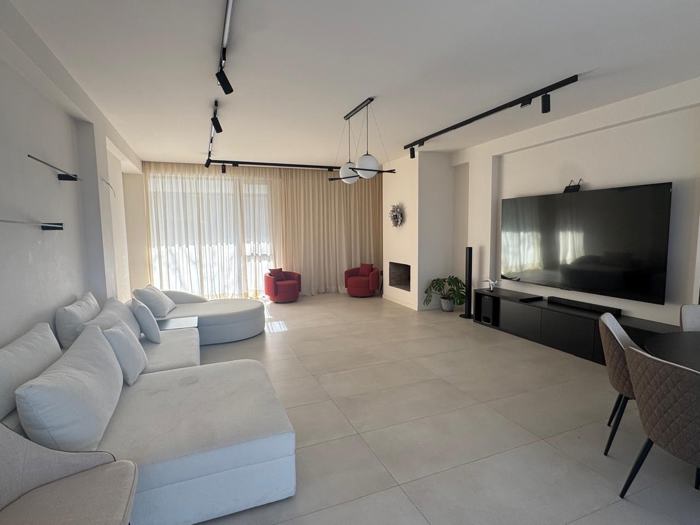 For rent is a newly built, renovated, travertine-clad fashionable house in Saguramo with the best location. (With 360-degree views) Featuring high-quality glazing and energy-efficient windows. Living room 70m/2; isolated kitchen 40m/2; 4 bedrooms (2 master bedrooms), 4 bathrooms; balcony 46m/2; terrace 72m/2; all communications (water, electricity, generator, central heating, central sewage...) heated swimming pool 5X10 with filtration. Surveillance cameras, the house is protected by the security service "Orbi". Decorative and fruit garden 1200m/2; modern design creates an ideal environment for relaxation and living. The pool and well-kept yard are particularly noteworthy, perfect for entertainment and relaxation. Price: $3500 per month for a long term; $4000 per month during the season.