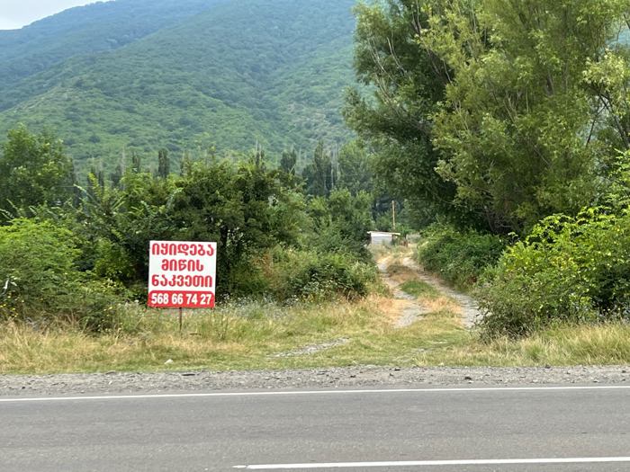 Land plot for sale. 1310 sq.m. in the village of Navazhi. Next to the central road, by the river Aragvi. Suitable for business as well. It's a very nice place, close to a drive and a restaurant. Electricity is connected on site. $70 per square meter. Price can also be negotiated.