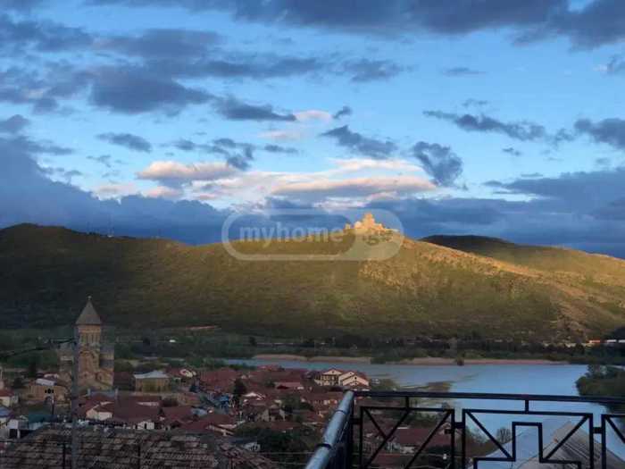 For sale: private house in Mtskheta, location: Mtskheta-Armazis street, house: 3 stories | 365 m², land: 1200 m² + 300 m² of river area, rooms: 10 | bedrooms: 4, bathrooms: on each floor, 2 fireplaces | furniture + equipment, separate oven and cellar, pool (needs finishing), stunning views in all directions. There is a private space leading to the river. Ideal for a large family or for a vacation home. Can be used as a family-type hotel! Price: $390,000. Contact us for details.