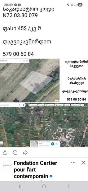 I am the owner, a 1600 m² land plot is for sale in Natakhtari. The plot is located in a developing industrial zone, surrounded by functioning factories and warehouses, which creates an ideal environment for commercial activities. The plot is in a proper shape and convenient for various types of projects. Ideal for: • Warehouse • Small enterprise • Car service • Logistics activities • Parking for trucks 📍 Close to the main road (approximately 1 km) 📍 Location: Natakhtari, strategically good location. Close to Henka and Mega Block warehouses. 📐 Land area: 1600 m² • Length: 93.5 m • Width from the road side: 15.9 m • Width from the back side: 18.3 m 🔌 All communications are nearby. 💰 Price: $58,000 (Negotiable)