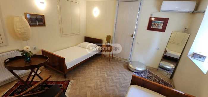 For long-term rent a 55 sq.m apartment in Sololaki, near Amaghleba Street, on 2nd floor in an Italian yard on Tsavkisis Street, renovated. The apartment has a living room, kitchen, bedroom, and another small room with a sofa bed. The apartment accommodates 3 people. Inside you will find a TV, washing machine, dishwasher, and refrigerator. The apartment has 1 small wet room. Prepayment for the first and last month.