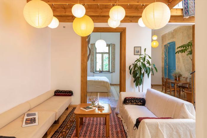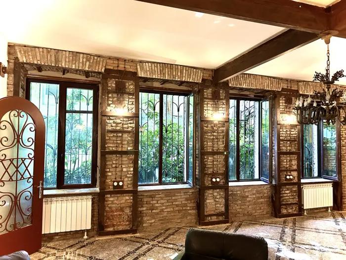 In Sololaki, in a prestigious location, a house is for sale on a green area (it is a Tbilisi courtyard project (not an Italian courtyard)). - Living area 110 sq.m. - Basement 35 sq.m (with fireplace and separate storage). - A loft can be arranged (currently not arranged). - The house has a yard in front and behind (a total of 75 sq.m). The rear yard is terraced.
