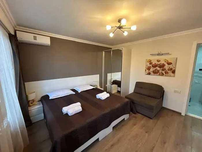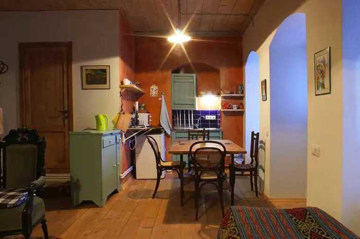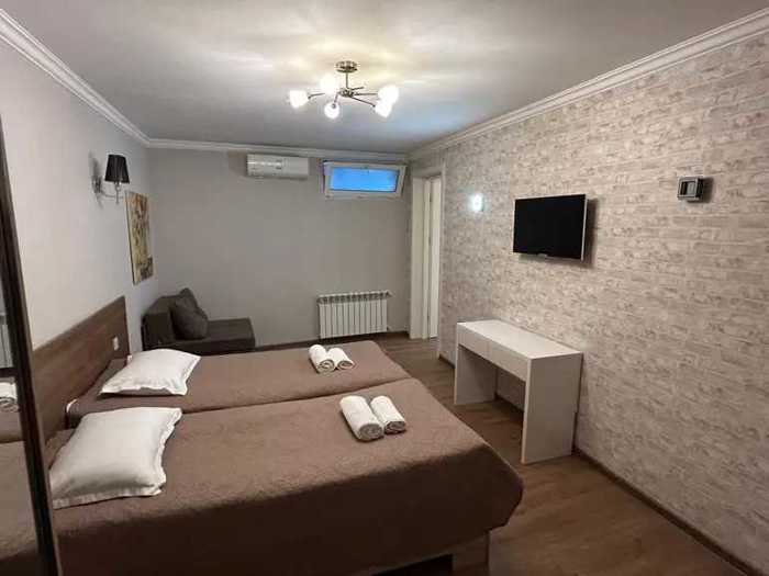 For rent daily! In old Tbilisi, in Abanotubani (near the sulfur baths), a 3-room apartment with hotel-style amenities and a beautiful view, it has a studio-type living room, a veranda, two bedrooms each with its own bathroom and air conditioning, and a beautiful yard. It can also be rented with one bedroom. The daily price is: 160 GEL.