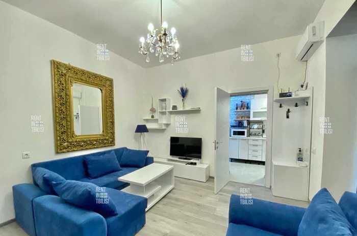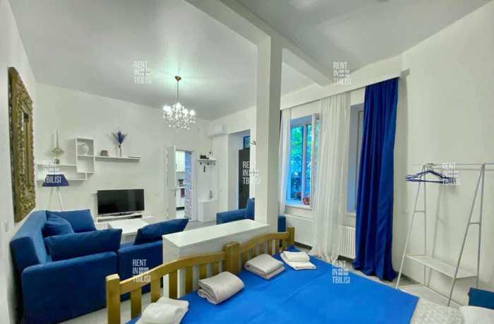 For rent: renovated apartment in the city center, in a historic and tourist-attractive location. Close to Sololaki, Freedom Square, and Sharden. In an Italian courtyard. All important objects are around the apartment. The apartment is newly renovated and equipped with furniture and all necessary household appliances.
