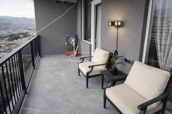 The apartment is located in Axis Palace 1, in the Bakhtrioni wing. The apartment is in perfect condition and is for sale with furniture and appliances. The building has a 24-hour concierge service, and the storage room is well equipped.