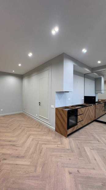 |For sale: a 2-room newly renovated apartment on Nutsubidze with a city view! A bright, sunny, and cozy studio-type 1 (one) bedroom apartment is for sale on the slope of Nutsubidze, on Meliton Kantaria Street, in a newly built, completed building. The apartment is newly renovated, uninhabited, and fully furnished. Minor works are ongoing before the completion of renovation works: kitchen countertop stone (quartz), soft furniture (sofa, armchair, bed), and kitchen lights have been ordered. An application has been made for the primary operation of gas. Apartment features: • Area: 54.6 sq. m • Floor: 9/14 • Layout: studio-type living room, 1 bedroom, and a balcony (4 sq. m) with a beautiful view of the city. Condition: The apartment has premium-class, modern design renovation. Emphasis is placed on details, expensive materials, and trendy visuals. • Designer solutions: flooring is laid with "pine tree" herringbone, decorative molding is used on the walls, and completely hidden doors (invisible door). • Exclusive furniture: built-in cabinets reaching the ceiling with trendy rattan facades and internal LED lighting. • Premium bathroom: large format ceramic granite, matte black plumbing. The shower is separated with contrasting, vertically laid dark tiles and equipped with an invisible, floor built water trap. • Space effects: the kitchen is equipped with fully mirror-like kitchen storage cabinets, visually doubling the space. • Lighting and view: modern point lighting throughout the apartment and floor-to-ceiling panoramic windows made of black aluminum materials. The apartment is equipped with a central heating system. Building and security: The building is well-maintained, protected by a coded entrance, and a 24/7 video surveillance system. Two passenger elevators are in operation. Parking is available both in the private parking lot of the building and in a secure yard (barrier). Conditions: • Total price: $120,000 Contact person: Otari