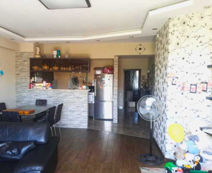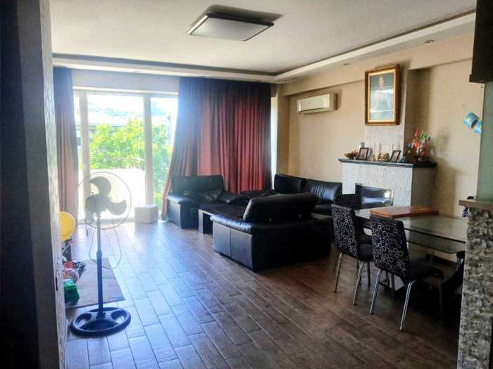 For sale in the center of Saburtalo, at the intersection of Pekini and Bulachauri streets, in a newly built, 8-year-old residential building, 7(14) 125 sq/m. Well-renovated apartment with two bedrooms, two balconies, and a wardrobe room, fireplace, central heating, furniture, appliances, and underground parking.