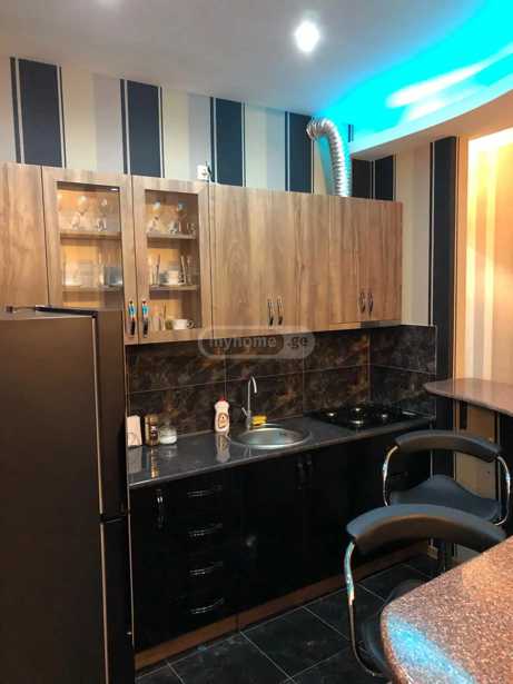 For sale! A 2-room, bright apartment, renovated. 5th floor in front of the Sarajishvili metro station. The apartment has central heating, air conditioning, underfloor heating, furniture, built-in kitchen equipment. Refrigerator, washing machine.