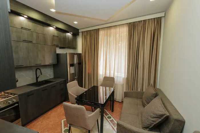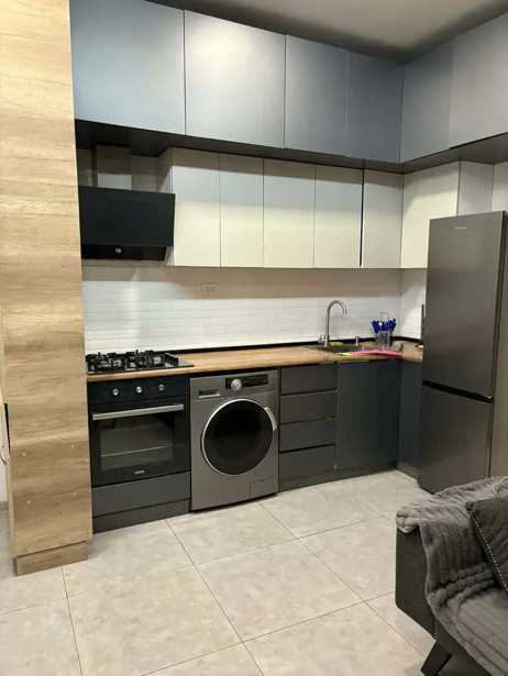 The apartment is located on Kipiani Street, near the Tsereteli metro station, in a newly built building, it has new renovations, furniture, and appliances.