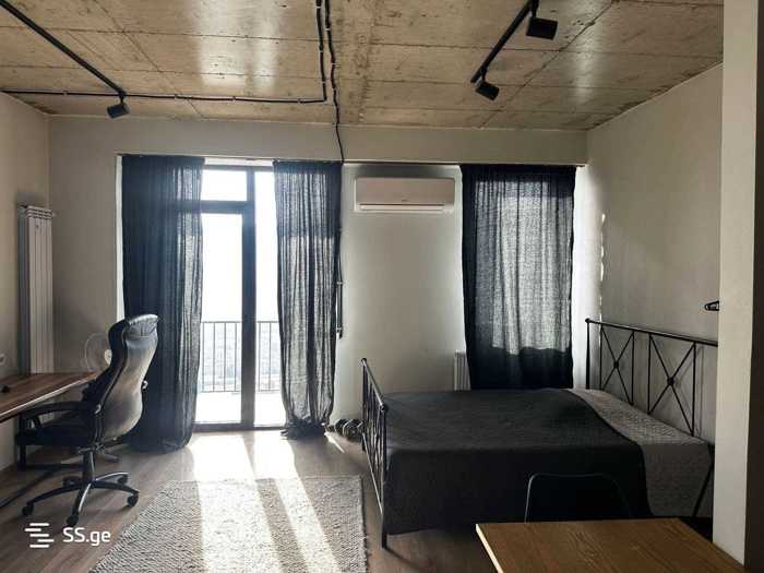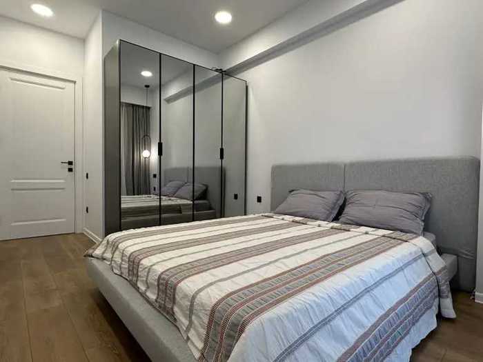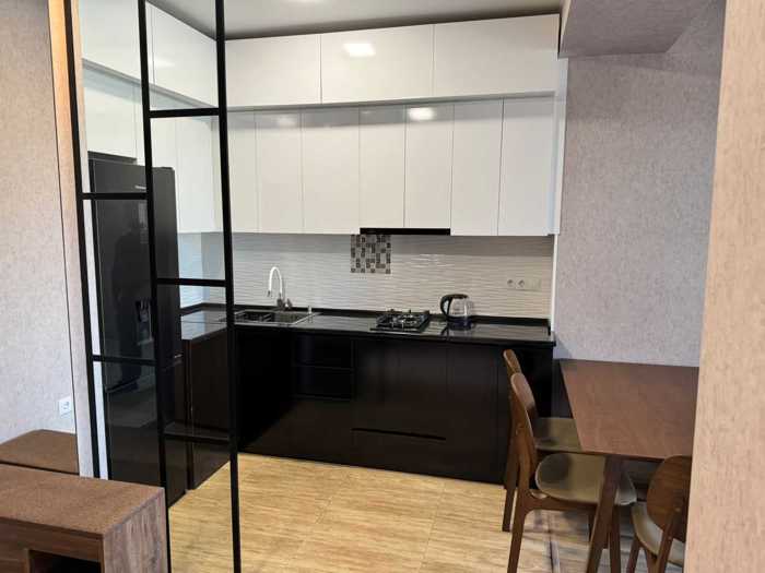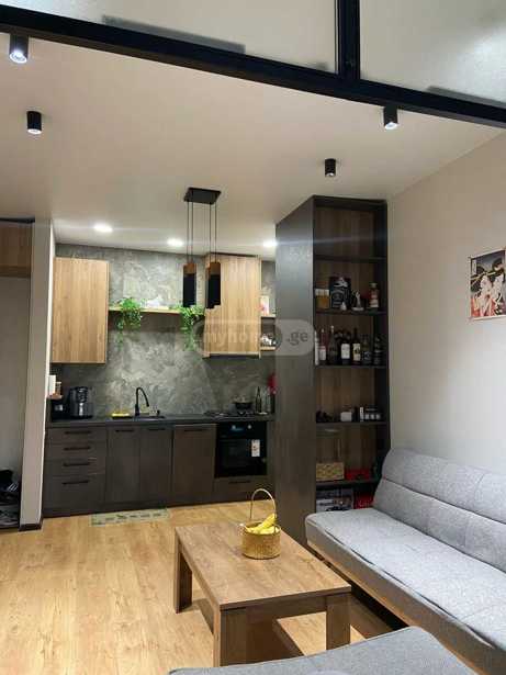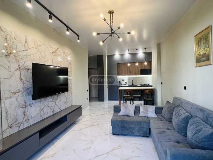 A newly renovated apartment with one bedroom, a studio-type living room with a kitchen, and a summer space (balcony) is for sale in the Ark residential complex in Lisi. The building is secured, has a green yard, and is close to schools, shops, gyms, stadiums, and Lisi Lake.