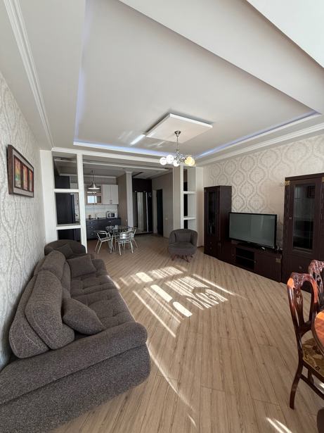 For sale is a house in Didube, near the Hope Clinic, on Davari Street. The house is very cozy. It is on the ninth floor of a ten-story building. The entire house has a balcony along its length, and you can access the balcony from every room. It has been renovated with good and expensive finishing materials. There are two bathrooms.