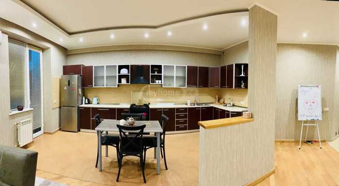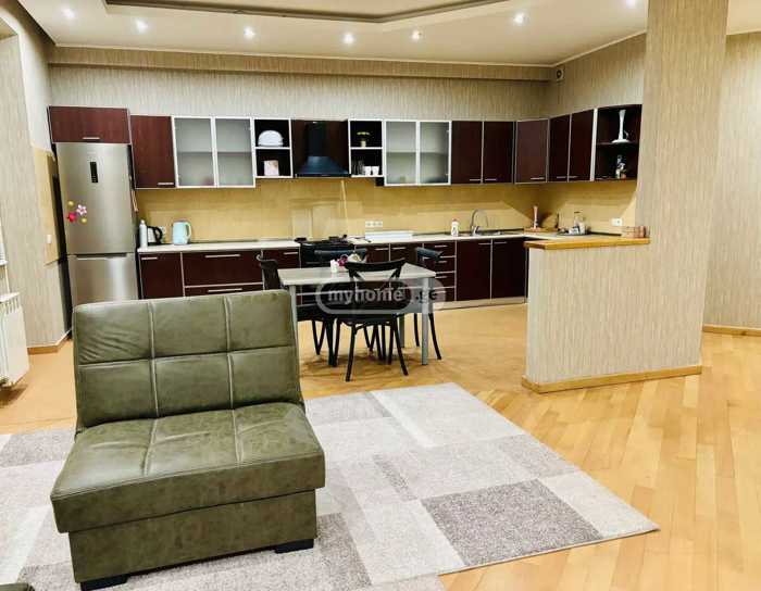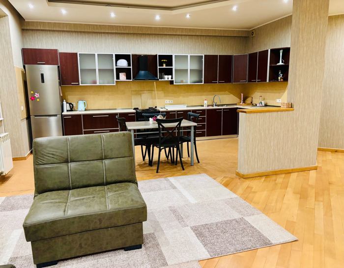 5-room apartment for rent in the area of Shanghai. In front of the Saburtalo mall. I am on the 4th floor (6) 150 sq.m. with 3 isolated bedrooms and 2 bathrooms. Equipped with all kinds of household inventory. Peaceful and cozy environment. If interested, please contact us.