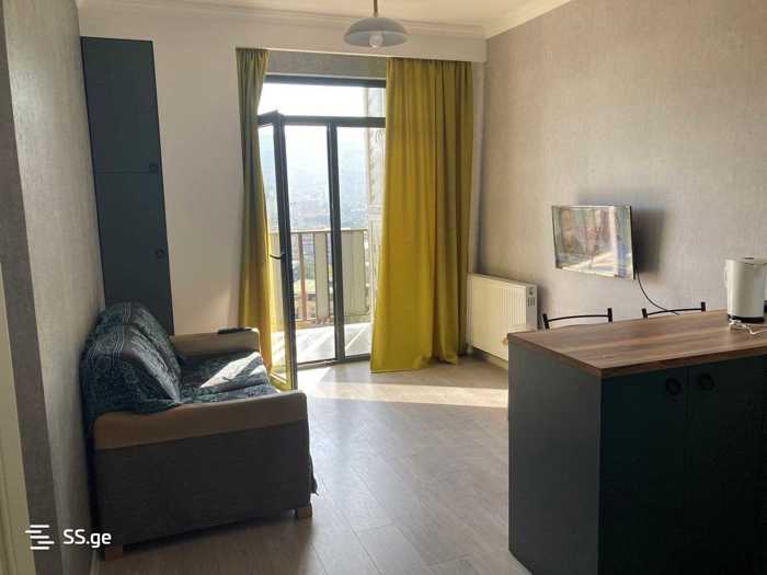 In Saburtalo, 7 minutes' walk from the Delisi metro station on Kamani Street, a 40 sq.m studio apartment with balconies is available for rent in a newly built building. It has 2 bright and sunny balconies. The condition is Euro renovation with furniture. Floor - 12/4. The building has a large landscaped yard, a park in the pine forest, a children's playground, a quiet environment, and clean air. Also, covered and open parking. Entrance with 2 large elevators, with chips. Barrier with remote control from both sides. There are panoramic views of Tbilisi from the balconies.