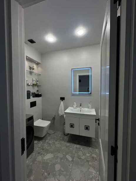 In Saburtalo, near the Delisi metro (5 minutes walking) on Kamani Street, a renovated 69 square meter apartment is for sale in a new building. (5 floors, secured entrance - video camera, chip door) with 2 bedrooms, 1 bathroom and one secondary lighting, (separate kitchen) furniture and appliances are included.