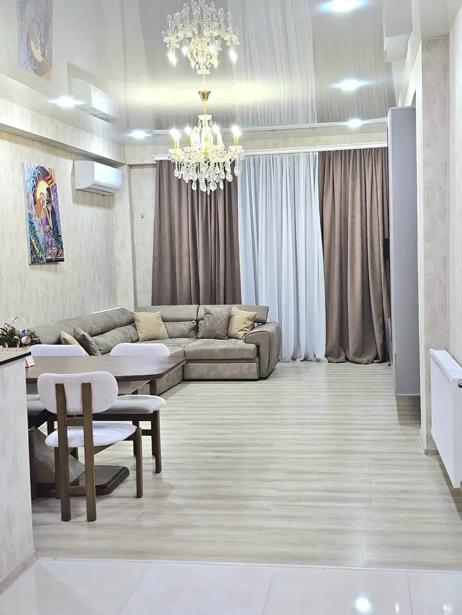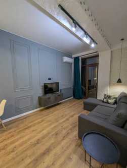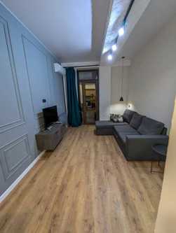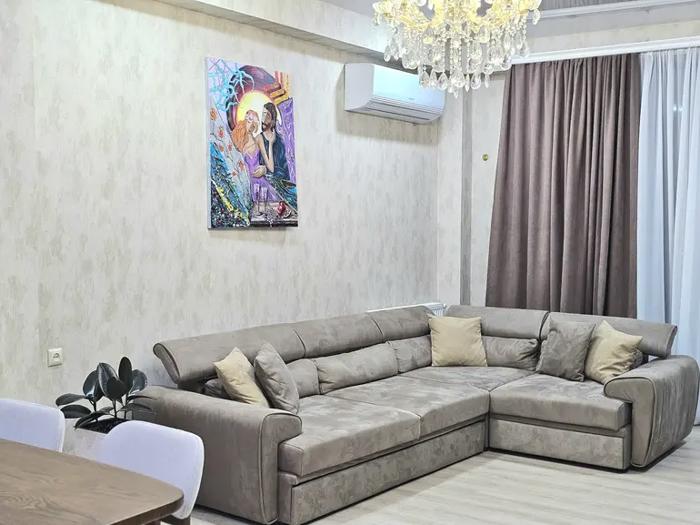 Three-room apartment with two bedrooms for rent, both with primary lighting. The apartment is newly renovated and decorated with modern design. The apartment has new appliances and furniture. The apartment is located 5 minutes' walk from both Goodwill and Agmashenebeli alley. 2 months in advance