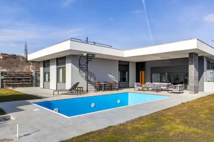 For rent: villa in Koshigora. (Available from 01.01.2026) 📍 Saburtalo District, Koshigora, Udbano Monastery Street 📐 Land area: 1000 m² 🏠 House area: 400 m² ✨ Features: • 7 rooms • 5 master bedrooms • Large living room with fireplace • Fully equipped kitchen • Sauna and pool • Balcony and veranda • Garage • Large green yard with decorative plants ✅ Newly built, renovated and furnished ✅ Equipped with all necessary furniture and appliances ✅ Ecologically clean and cozy environment 🌇 Beautiful panoramic view of the city 💵 Price: 4300 $ 📌 The price includes garden and pool maintenance.