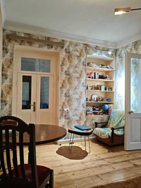 For sale is a 3-room apartment on Mtatsminda, with Tbilisi-style stained glass, in a Tbilisi yard, 87 square meters. The bathroom-toilet and kitchen are located in a separate, isolated building and are in need of renovation.