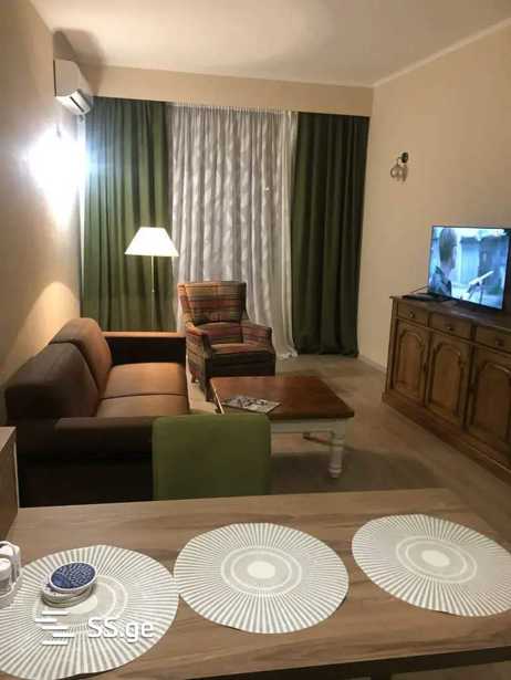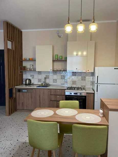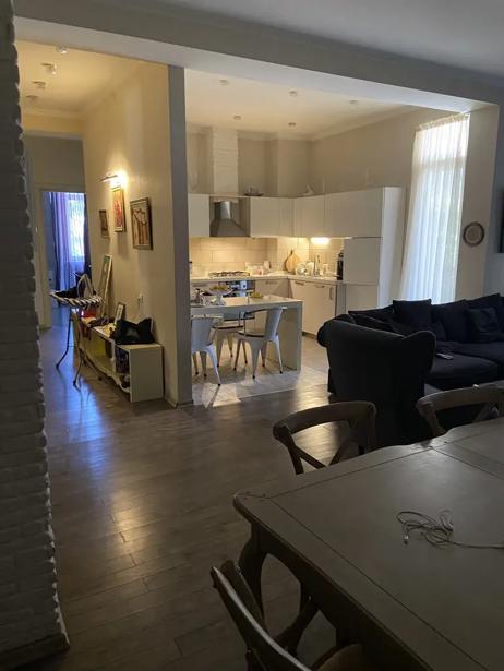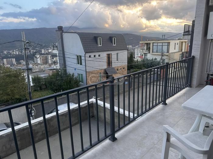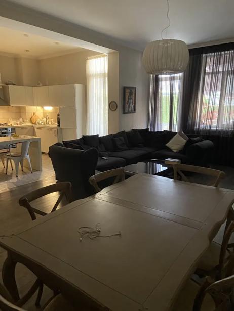 A 3-room apartment in a townhouse is for rent at 12 Sergi Danelia Street, at the intersection of Kapaneli Street, very close to Lisi Lake. If you want to live in a very quiet and peaceful place with fresh air and beautiful views, this apartment is for you. The apartment is uninhabited, and the furniture and appliances are all new. It has a separate storage room that can be used as a wardrobe. It includes a dishwasher, washing machine, central heating, electric oven, air conditioner, refrigerator, furniture, and beds with storage. The apartment has a veranda with beautiful views of the city from the front, and a balcony leads to the yard at the back, where you can set up a barbecue/grill. The house has its own covered garage equipped with security cameras. The entrance is locked and well-maintained.
