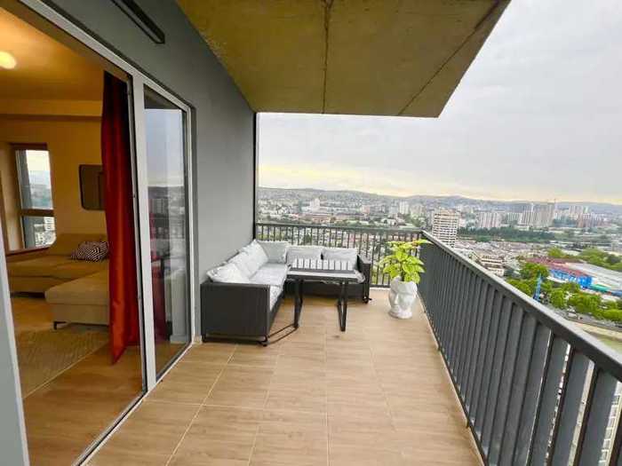For sale is a 4-room apartment in a newly built complex. 3 bedrooms with natural light, 2 bathrooms, a dressing room, a kitchen + a common studio room. View of the yard and the Mtkvari River. Total area 100 sq.