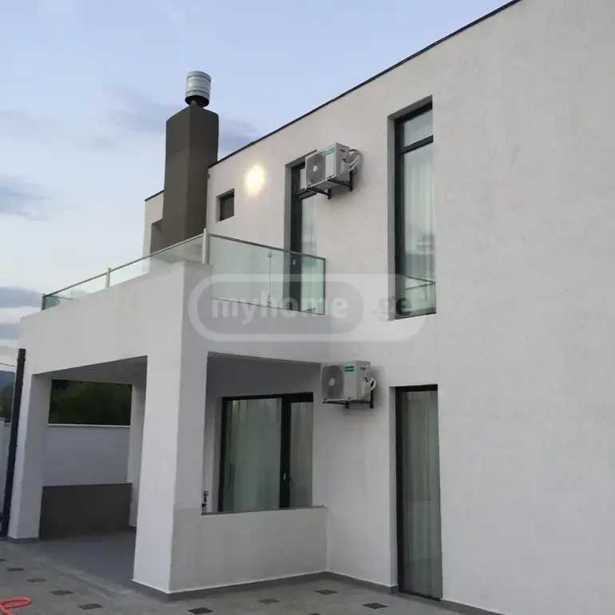 Behind the city court, in Dighomi, a private house. Newly built, commissioned, equipped with top quality renovation and furniture. On the first floor, there is 1 bedroom, a large bathroom-toilet, a living room, kitchen, and technical room. The second floor hosts 3 master bedrooms, equipped with individual bathrooms and dressing room. Both floors of the house are enclosed with large windows and glass balconies. In the yard, there is a pool measuring 4.5x8m, which is tiled with travertine stone. An automatic irrigation system is installed for plants and lawn. The house is also equipped with cameras and an electric opening mechanism for the gate.