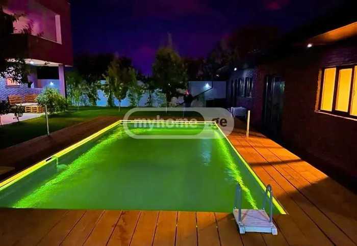For rent is a newly built, officially registered and commissioned, modern design, multifunctional, well-equipped residential-recreational complex. Ideal for both a large family and a company that intends to arrange office rooms: 1. From two isolated residential houses 2. 10x5 swimming pool 3. Auxiliary building located in the yard The residential house includes two isolated apartments (arranged according to the mirror principle), each consisting of 4 bedrooms, a large living room (88 sq. m) on the first floor, a built-in Italian kitchen, with all kinds of household appliances, and a panoramic terrace on the third floor. The auxiliary building located in the yard is 120 sq. m, consisting of a wine cellar, a recreation room, fitness area, bathroom, and a room for service personnel. Ceiling height is 3.5 m. Yard area is 600 sq. m. Total area is 1000 sq. m. Total floors 3 Total rooms 15 Bedrooms 8 Total bathrooms 7 Total balconies 4 Terrace 212 sq. m.