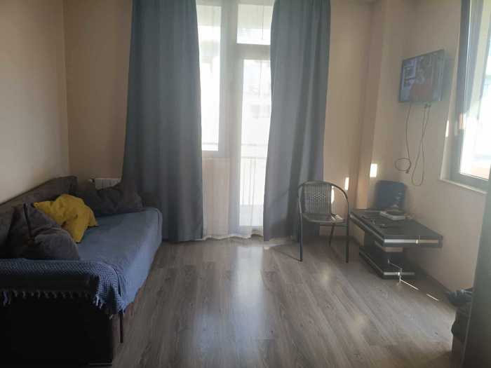 For sale is a newly renovated, uninhabited apartment with furniture and appliances in a building constructed by Dona Group.