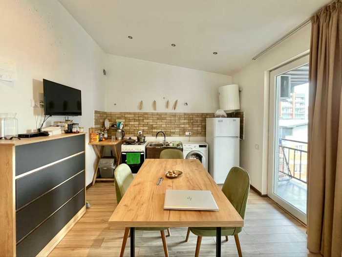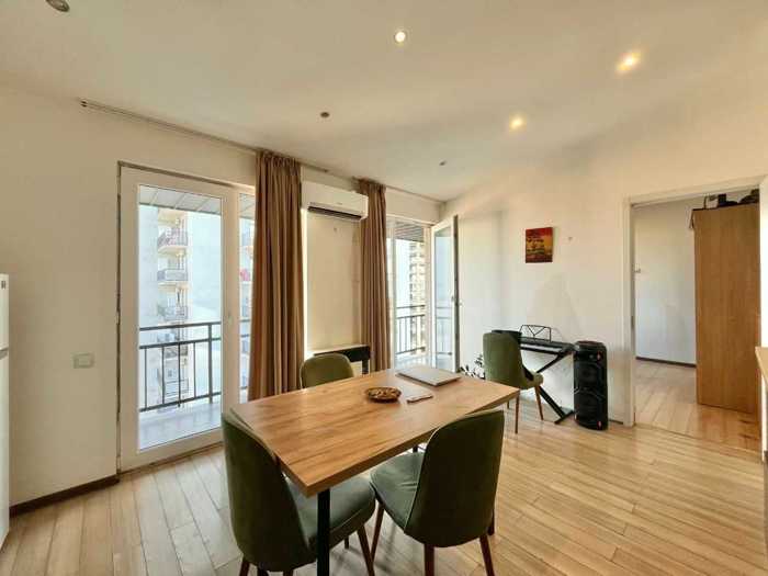 I can send a video. A 45 m² apartment is for rent on 8b Ana Politkovskaya Street, Tbilisi. Equipped with all necessary appliances. The apartment is located in a prestigious area, where there is well-maintained infrastructure, green spaces, and a pleasant environment. Payment in advance for two months.