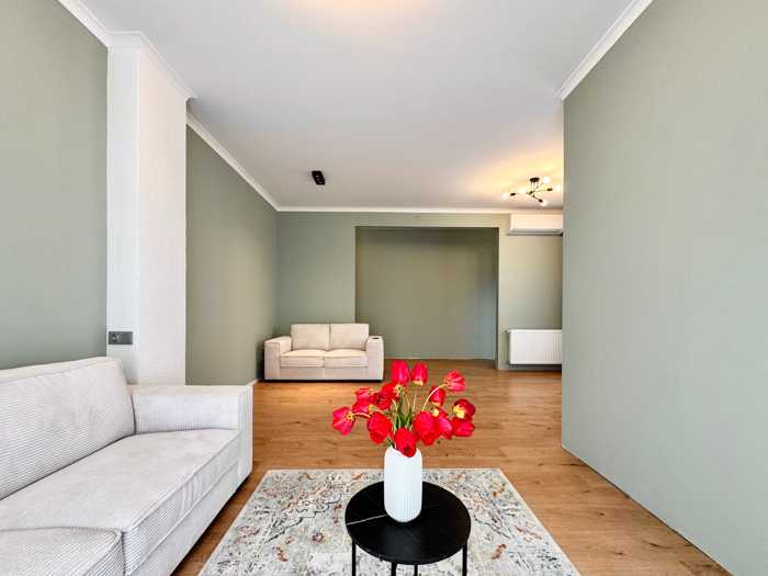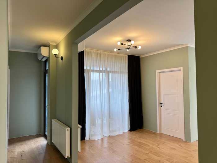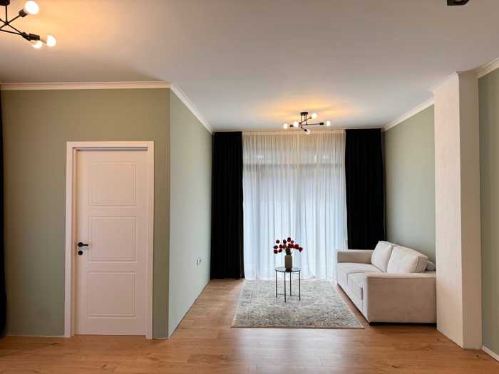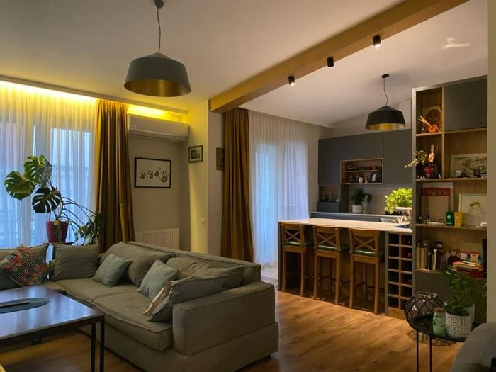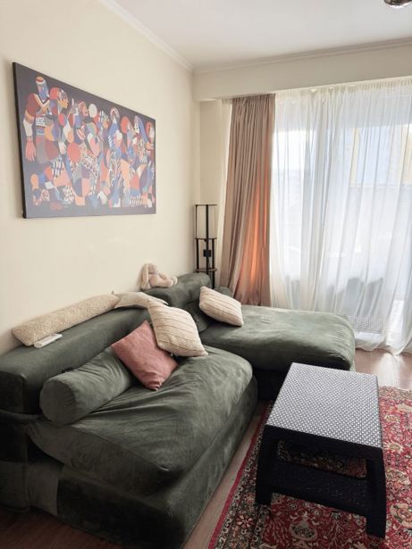 |For sale: newly renovated, sunny and bright corner type apartment of 72 sq.m. in a prestigious location. It has a comfortably furnished balcony of 6 sq.m. from which a beautiful view of the greenery unfolds. Apartment features: Area: 72 sq.m. Location: Saburtalo, 100 meters from the park (ecologically clean and quiet environment). The building has a gated parking space that the new owner of the apartment can use. Furniture and appliances: the apartment is sold fully furnished — with furniture and high-quality appliances. Additionally: Water filtration system + additional filter for drinking water; Premium quality Italian heating system; Spanish tiles and German laminate; Thermo-closet on the balcony (for the protected storage of items and food in any weather); Dressing room and huge storage spaces at the entrance and in both bedrooms; Large and bright separated study/work area. The apartment is in excellent condition, tastefully furnished, and fully ready for living.