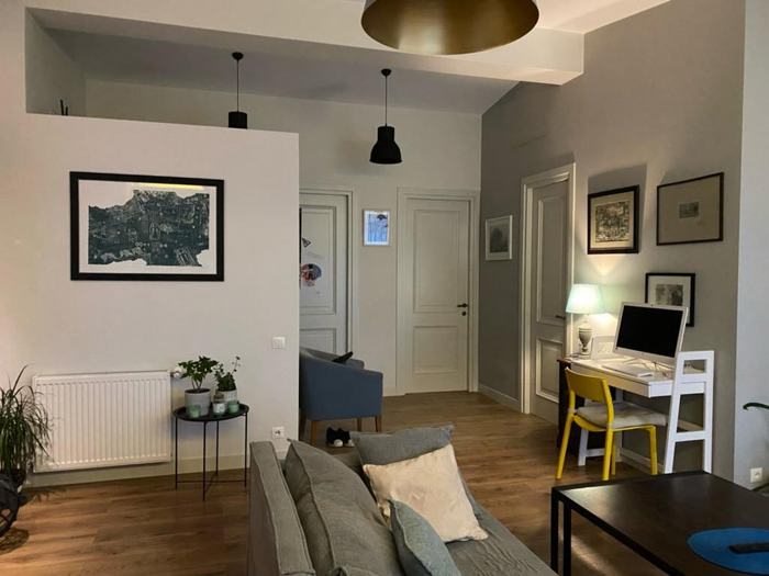 For rent is ''your house in Jikia'', a 3-room renovated studio-type apartment with all the necessary equipment and furniture, a large balcony, and two bedrooms. The apartment is located in Tbilisi's most sought-after neighborhood, in a prestigious, green complex. The uniqueness of the apartment is highlighted by: • a green, protected, and secure yard with recreational and relaxation spaces • café-bars and markets • children's play areas, beauty salons, and meeting spaces; • fitness centers and a flower shop • confectionery shops, agro markets, and pharmacies; the complex is served by 24-hour security; The apartment is located 200 meters from the university metro station. The bus stop is 50 meters away. Nearby is the Tbilisi Mall shopping center within a 5-minute walk, government and medical universities; medical centers - Inova, Curatio, universities, Aladashvili Clinic, Jordania Clinic, and others. View over the yard Cozy