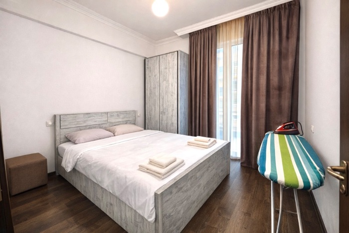 From April 10, an apartment with 1 bedroom is available for rent in the complex "Your Home in Jikia." Convenient location: 2 minutes away from the metro station "State University." Next to the "Reiman's" clinic. Green yard. Well-maintained infrastructure. Security. Sports ground. Children's playground. Peace and easy access to transport and main highways (Nutsubidze Street, Vazha-Pshavela Avenue, Kvartskhava Street, University Street). The apartment is newly renovated, fully furnished, and equipped with household appliances. The apartment has a balcony. It is not rented for less than 6 months.